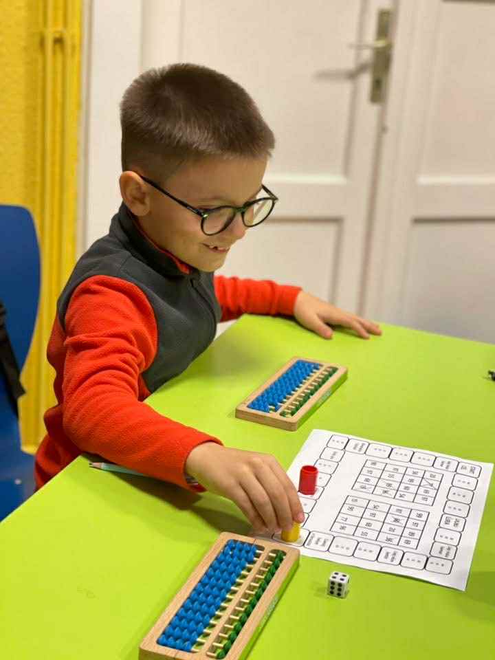 Tanfolyamunkon az abakusz segítségével számolnak a gyerekek ezáltal sokkal könnyebben érthetővé válik nekik a tízes átlépés, a számok bontása 10-ig műveletekben alkalmazva is és természetesen az összeadás, kivonás és az osztás szorzás.